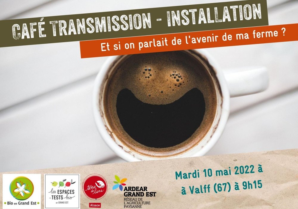 Futurs cédants, porteurs de projet et partenaires, vous êtes conviés à un café transmission-installation le mardi 10 mai à 9h15 à la salle polyvalente de Valff (67) pour partager les expériences et pratiques autour de la transmission des fermes en Alsace.