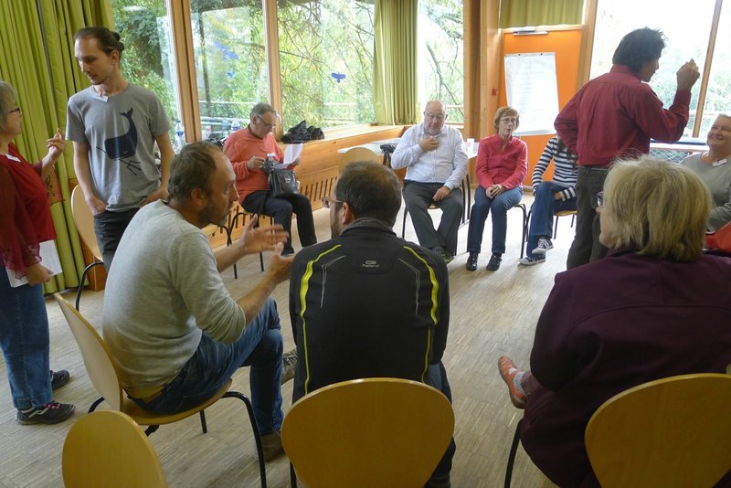 La journée a débuté autour d’un sympathique café d’accueil avant d’entamer un premier atelier pour faire connaissance. La carte de l’Alsace épinglée au mur permis à la fois d’identifier le territoire de chacun et une petite révision de géographie pour tous ! Autour du cercle, le groupe représentait toute la belle diversité des profils de l’association : du nord au sud, citoyen ou porteurs de projet...