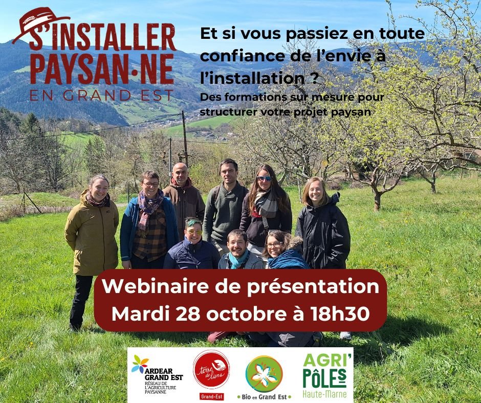 L'ARDEAR, Terre de Liens et Bio en Grand Est s'associent pour vous proposer un accompagnement et des formations : "S'installer paysan·e en Grand Est".