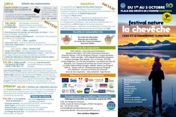 Pour la 9ème édition du festival nature sur l’eau et le changement climatique, le CPIE nous accueille place des droits de l’Homme, à Nontron.