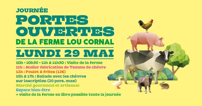 Nous vous attendons à partir de 10h pour les premières visites guidées de la ferme, suivies de l'atelier fabrication de tomme de chèvre à 11h et du déjeuner autour de notre fameux poulets/frites !