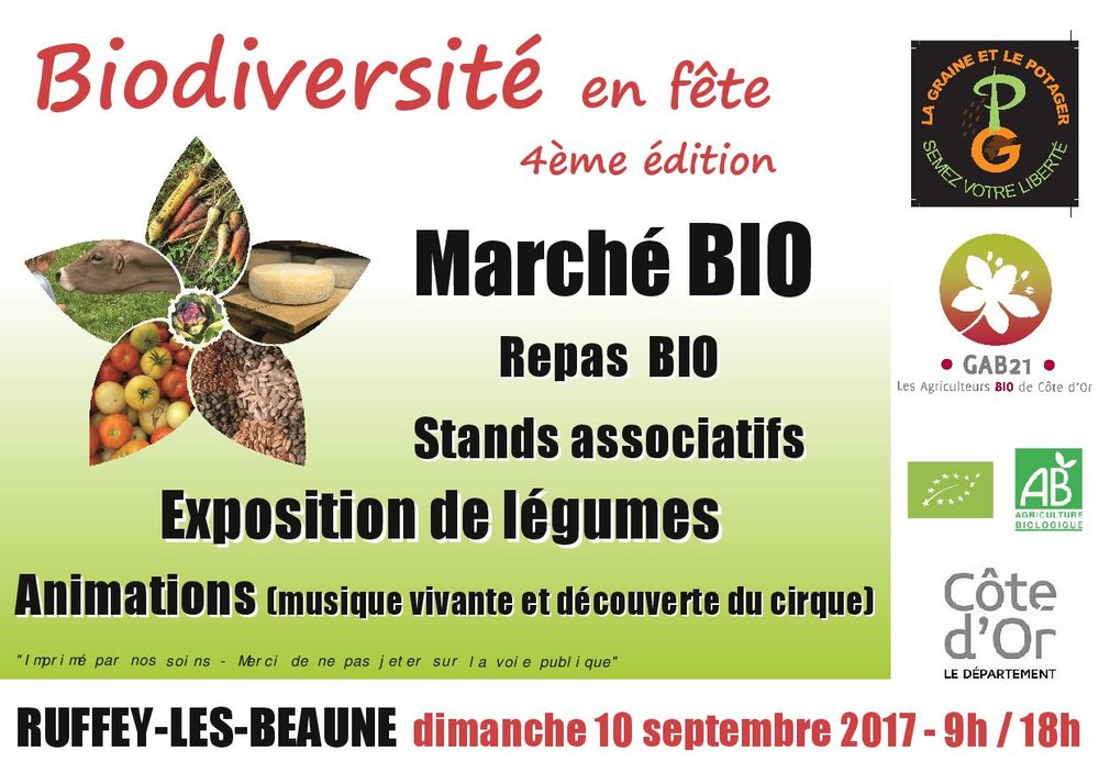 La Graine et le Potager organise la 4ème édition de sa "BIODIVERSITE EN FETE" qui aura lieu le dimanche 10 septembre 2017 à Ruffey-les-Beaune (21).