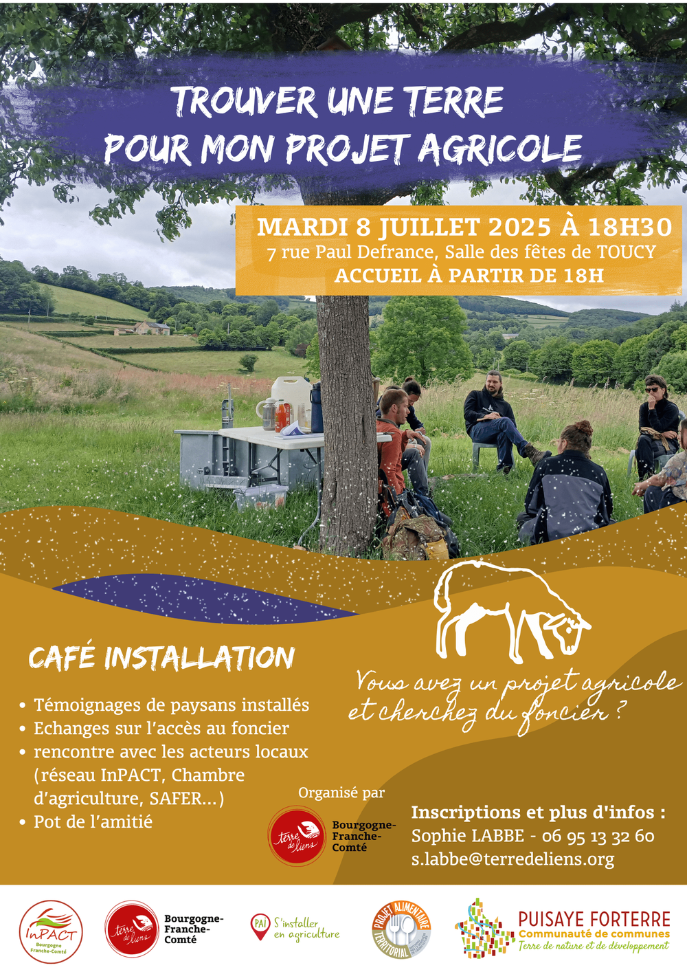 Ce sera l'occasion d'échanger avec Terre de Liens, la Chambre d'Agriculture 89, la SAFER 89 ainsi qu’avec nos témoins autour des questions d'accès au foncier et de la recherche de terres, en cohérence avec son projet agricole.