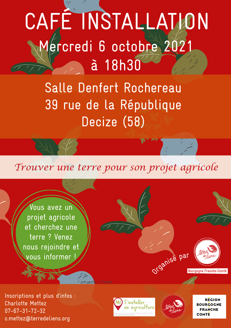 Il y aura des témoignages et la présence de Terre de Liens ainsi que le Point Accueil Installation du département : rdv mercredi 29 septembre à partir de 18h30 à la salle du Grand Labo à Hop hop hop, Besançon.
