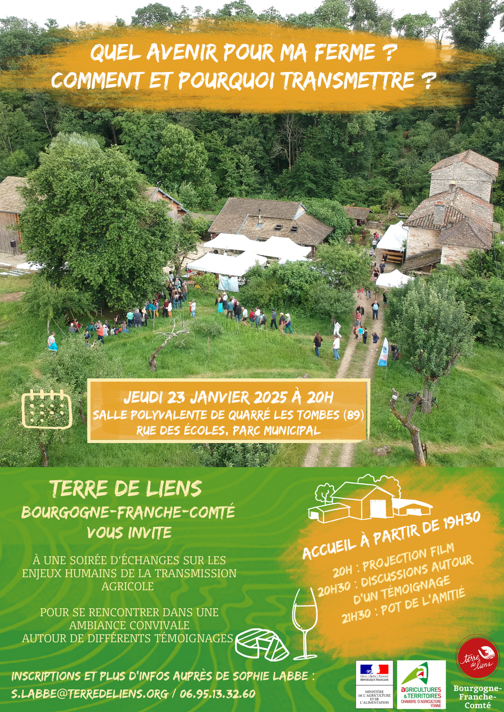 Informations et inscriptions à la soirée transmission : au 06.95.13.32.60 ou par mail : s.labbe@terredeliens.org