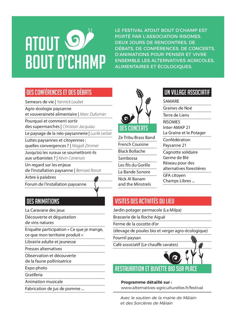 Retrouvez la programmation détaillée sur le site : http://alternatives-agriculturelles.fr/festival/