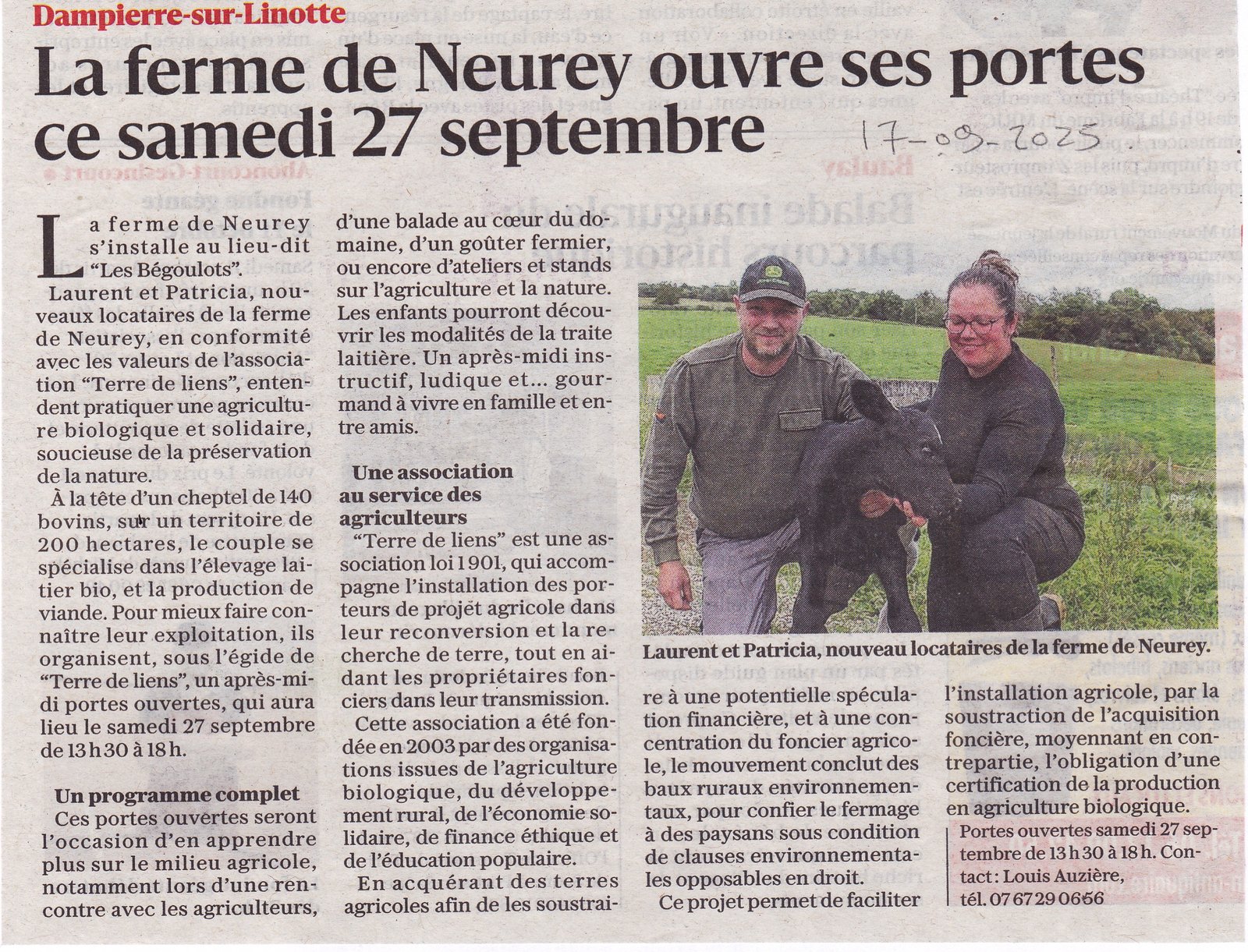 Venez découvrir la ferme Terre de Liens de Neurey, une ferme laitière engagée en agriculture biologique, où le respect de la nature et le bien-être animal sont au centre de chaque geste.
