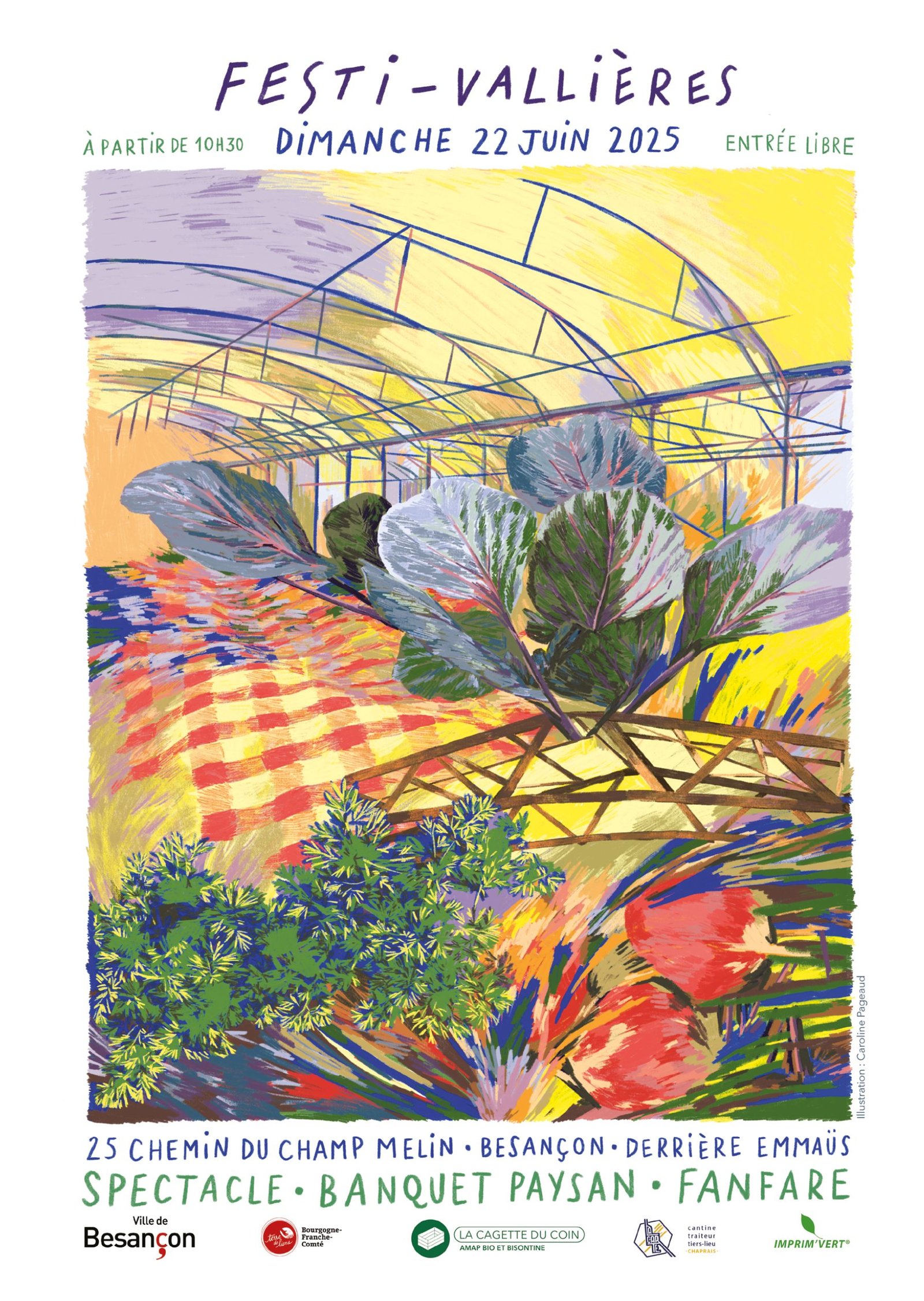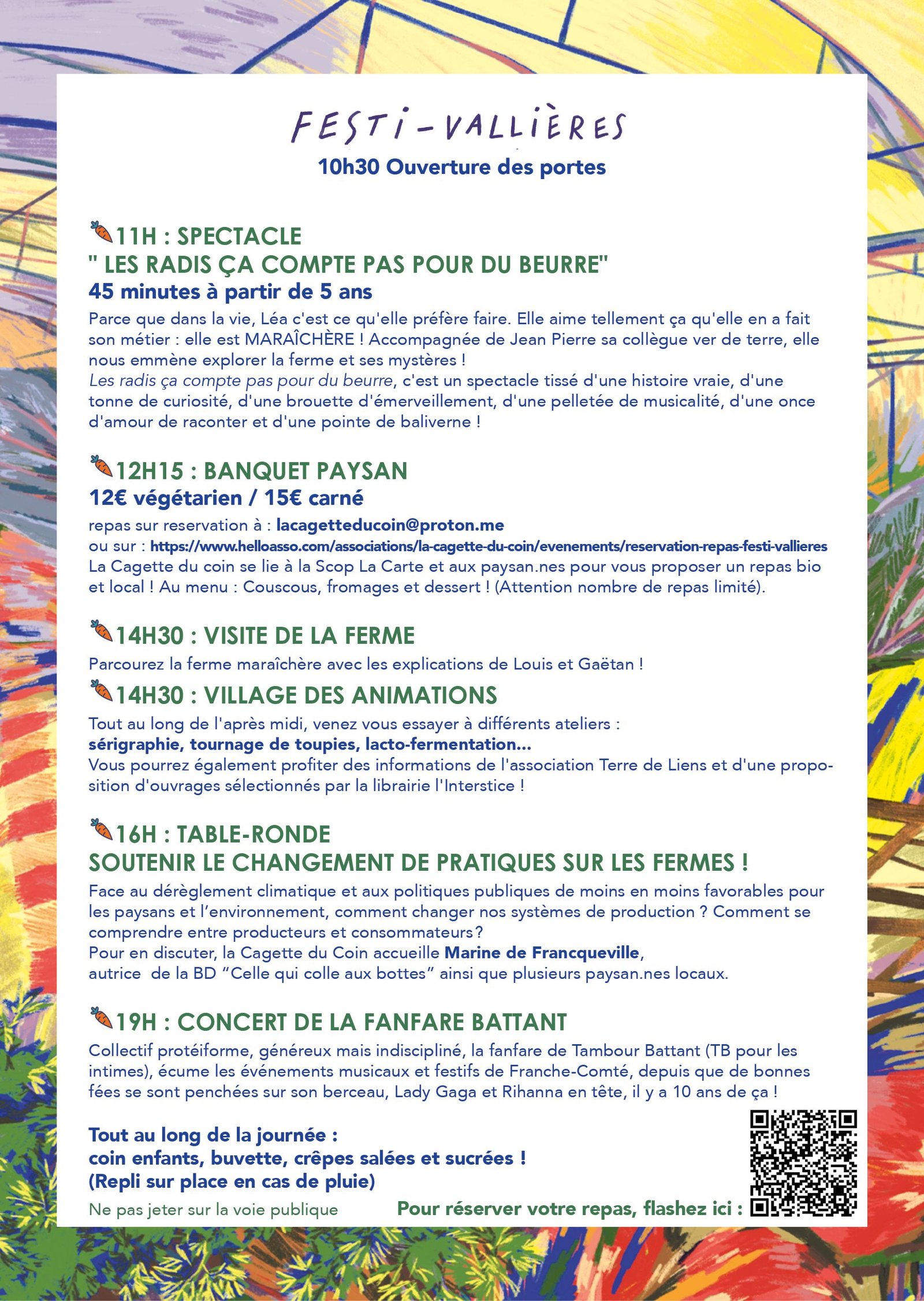 Le midi, on vous propose un banquet paysan, notamment un couscous cuisiné avec amour par la SCOP Carte Blanche avec les légumes de la ferme et les agneaux d'une autre ferme Terre de Liens, La Ferme de Barband (plat végé possible aussi).