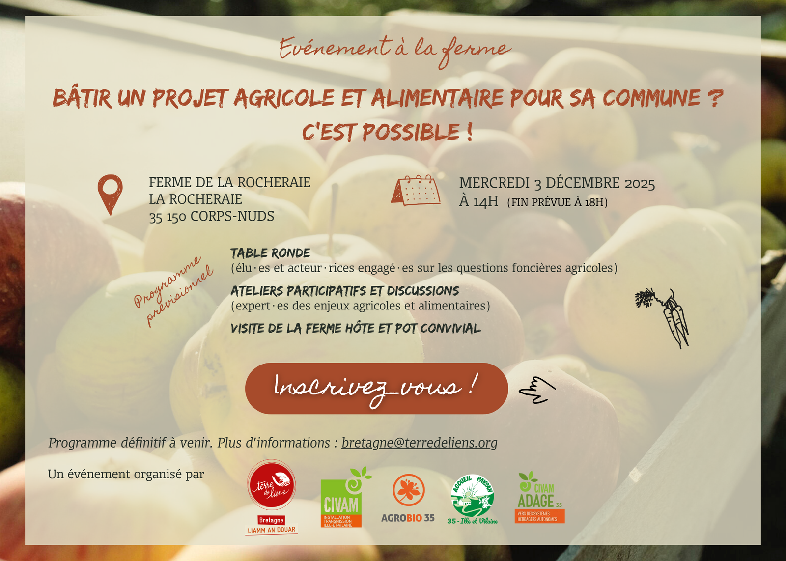 Dans le cadre du programme En campagne, porté par Terre de Liens Bretagne, les membres du collectif InPact 35 ont le plaisir de convier élu·es des communes bretonnes et candidat·es aux municipales 2026 autour d'une question centrale :