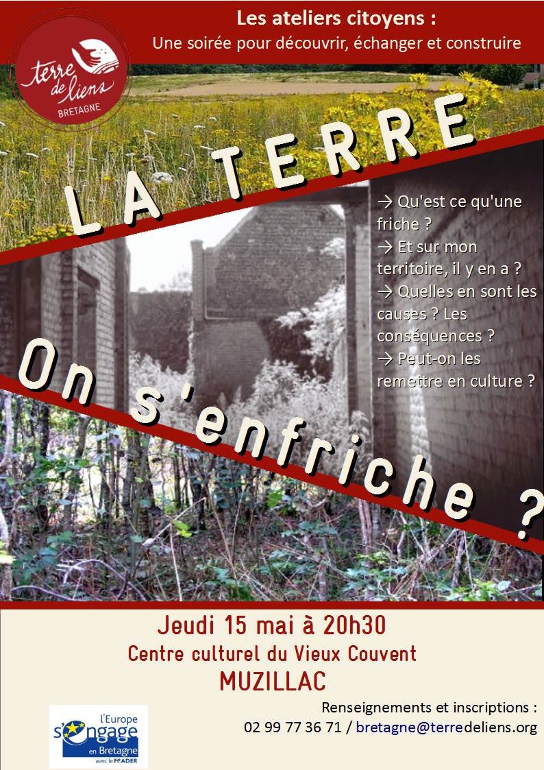 Pour mieux comprendre d’où vient ce phénomène, ces impacts sur un territoire (paysages, productions alimentaires...) et le potentiel de ces friches, l’association Terre de Liens Bretagne propose une série de 3 rendez-vous sur le Pays de Vannes sous forme d’ateliers-citoyens, les 15 et 26 mai puis le 10 juin.