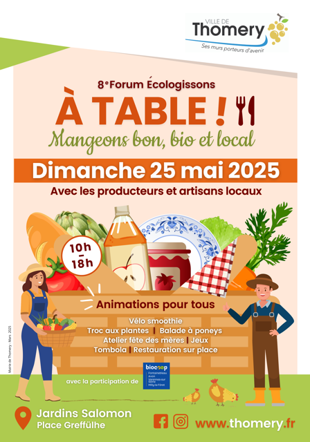 Dimanche 25 mai, Terre de Liens Île-de-France a le plaisir de participer au 8e Forum Écologissons organisé par la ville de Thomery, en Seine-et-Marne.