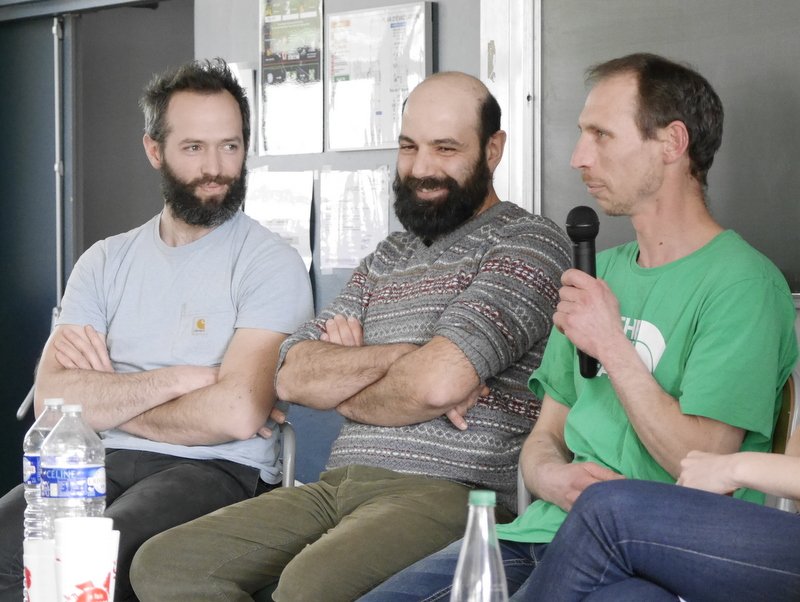 « Je fais partie d’un collectif de huit personnes : un maraîcher et une maraichère qui accueillent une “couvée” de trois personnes ; une personne qui cultive des arbres fruitiers, des petits fruits… tous les fruits qui peuvent se cultiver sauf les pommes… Un apiculteur nous a rejoints récemment qui a fait le choix d’élever des abeilles noires ; moi-même paysan-boulanger sur 60 ha. Il y a trois personnes qui font partie du collectif, qui vivent sur place mais ne font pas d’agriculture mais qui font vivre la ferme d’une autre manière en accueillant des événements culturels ».