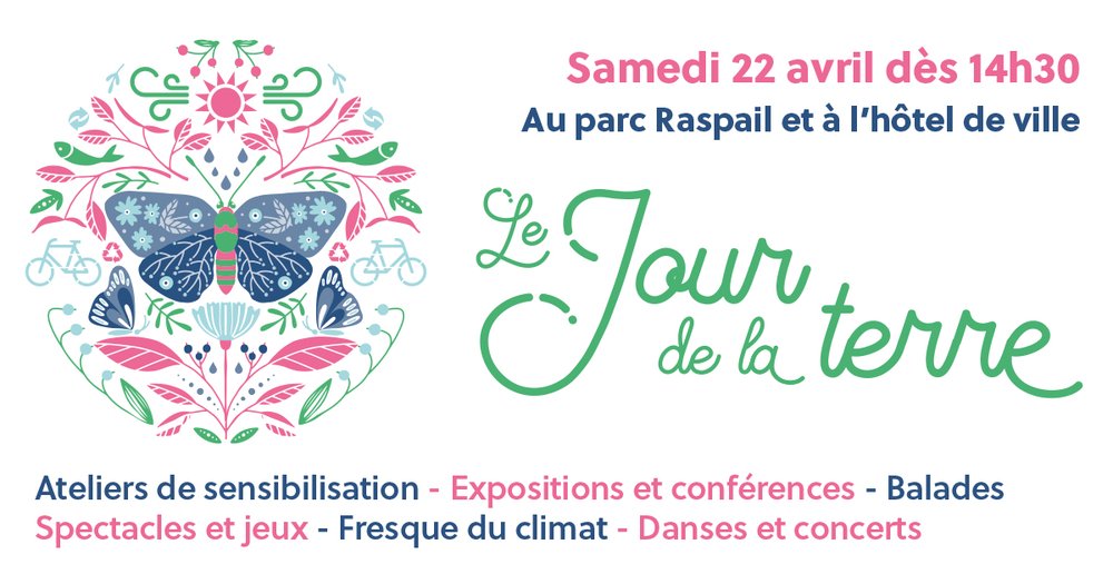 Samedi 22 avril, le #JourdelaTerre se fête au parc Raspail et dans toute la ville. Avec l'association Cachan en transition, retrouvez tous celles et ceux qui œuvrent au quotidien dans notre commune pour faire de la transition écologique une réalité.