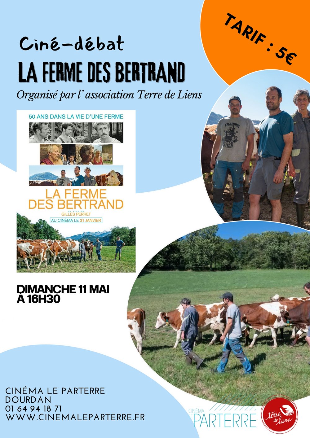 Terre de Liens Île-de-France organise un ciné-débat le dimanche 11 mai au cinéma Le Parterre à Dourdan à 16h30. La projection du film "La ferme des Bertrand" réalisé par Gilles Perret en 2024 sera suivie d'un débat et de témoignages.