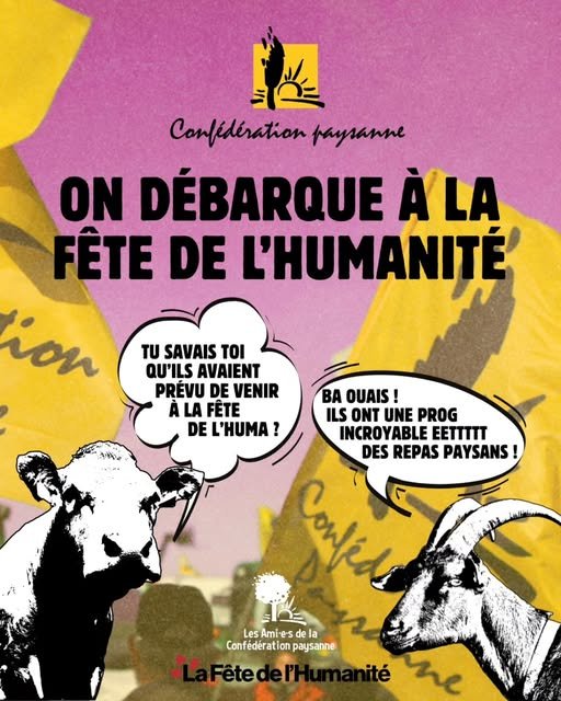 Pendant trois jours, l'agriculture biologique et paysanne sera présente à la Fête de l'Huma: animations, conférences, buvettes et repas avec des produits paysans seront au rendez-vous !