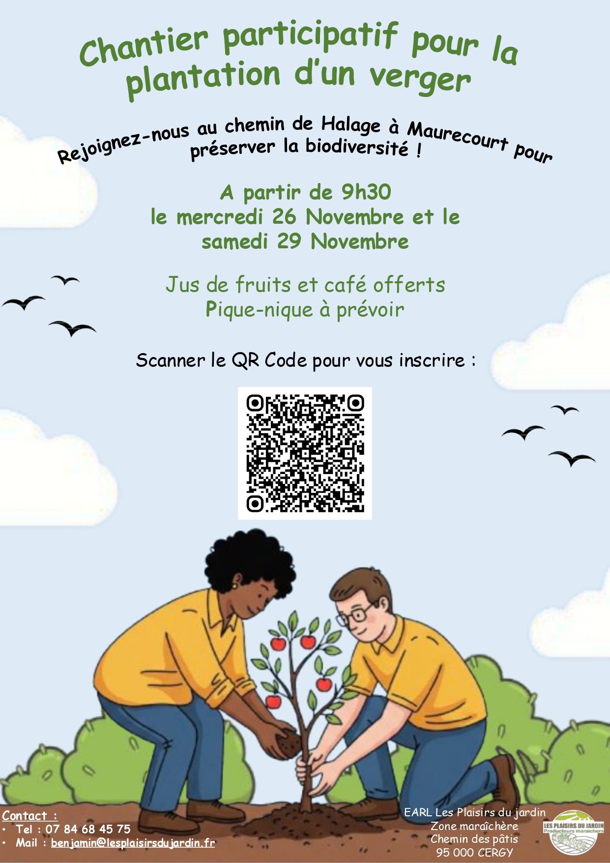 Les Plaisirs du Jardin vous invite à participer à un projet passionnant de restructuration d'un verger de pommiers, poiriers et pruniers à Maurecourt.