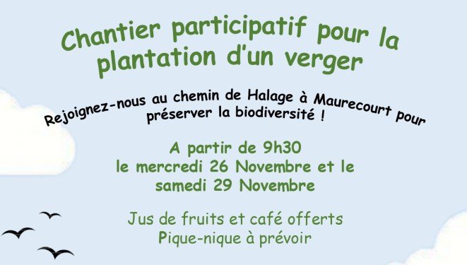 Nous vous invitons à nous rejoindre lors de deux journées de plantation conviviales, ouvertes à tous ceux qui souhaitent contribuer à la création de ce verger diversifié.
