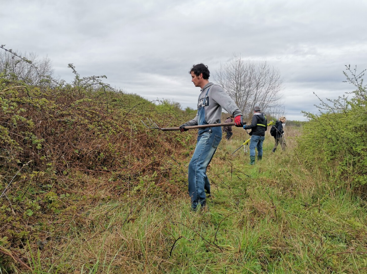 Armés de gants, sacs poubelle, sécateurs et autres outils, nous avons débroussaillé, nettoyé, semé différentes graines (sarrasin, lentilles, lin, moutarde...) qui serviront à nourrir les cochons en plein air de Keryann.