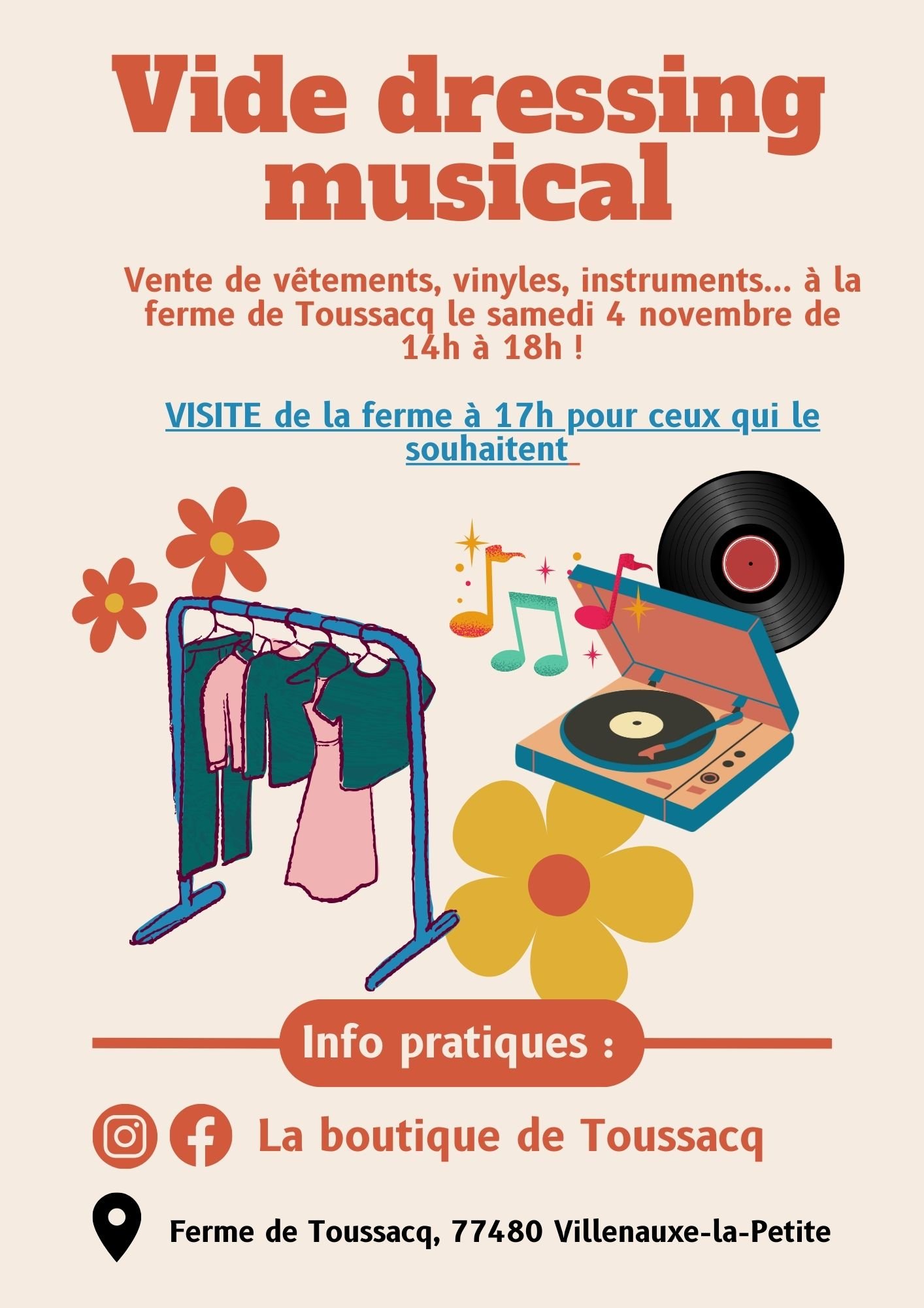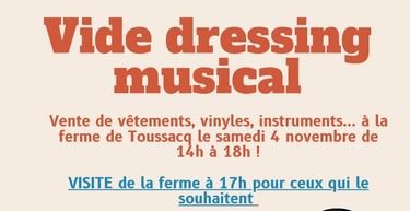 La boutique de Toussacq organise un vide dressing et une brocante musicale à la ferme, vous pouvez donc vendre vos habits, accessoires et tout ce qui a rapport avec la musique ou venir acheter ces mêmes produits.