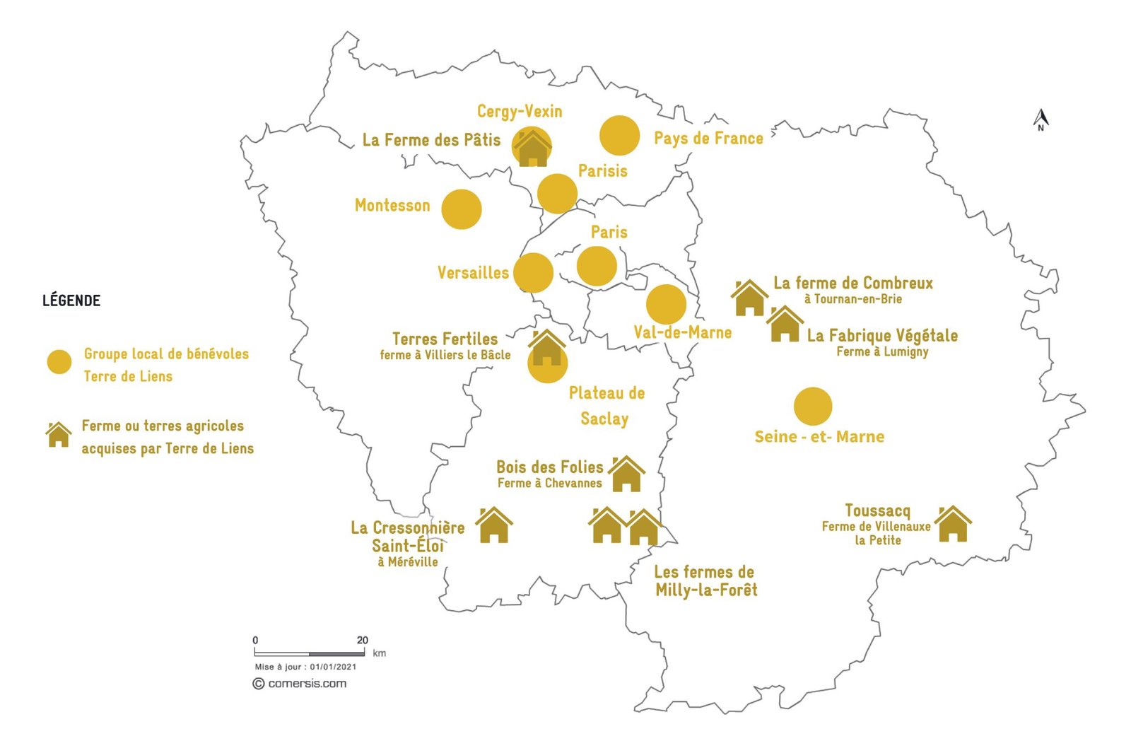 CARTE - groupes locaux et fermes Terre de Liens en Île-de-France