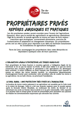 Terre de Liens Île-de-France vous accompagne gratuitement dans votre démarche. - Étude et conseil sur la faisabilité d’un projet agricole sur votre site - Recherche des candidat·e·s pour développer un projet sur votre site - Définition du bail adapté à votre projet - Accompagnement dans la mise à bail
