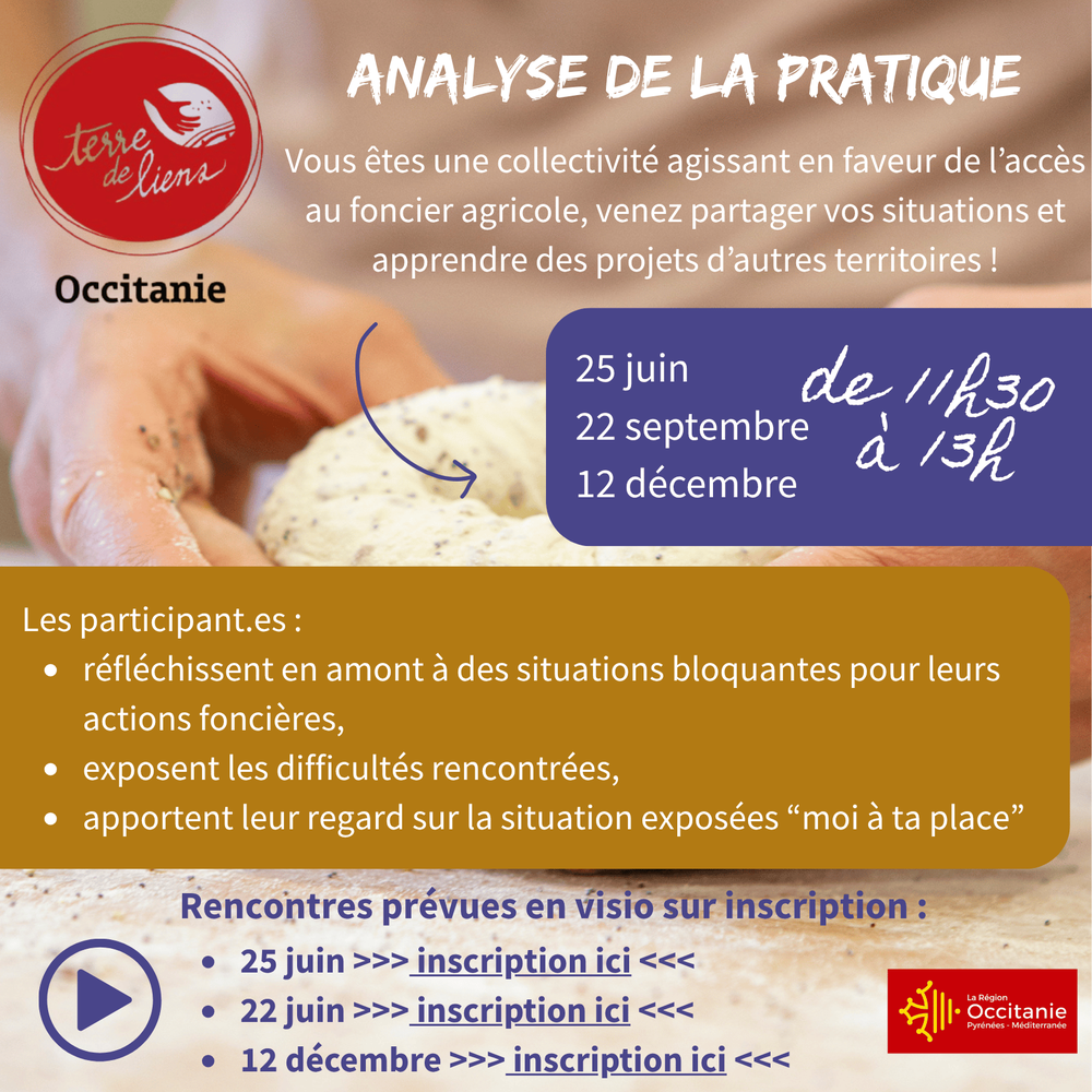 Terre de Liens produit de l'analyse sur le thème du foncier agricole depuis près de 20 ans principalement grâce à son travail de terrain par la maîtrise et la gestion au long cours de fermes mises à disposition par bail à des projets agricoles engagés en agriculture biologique. Afin de mettre à disposition cette expertise et faire essaimer vos travaux et réflexions, deux types d'ateliers sont proposés aux élus et agents des collectivités: des ateliers d'analyses de la pratique et un cycle de webinaires !