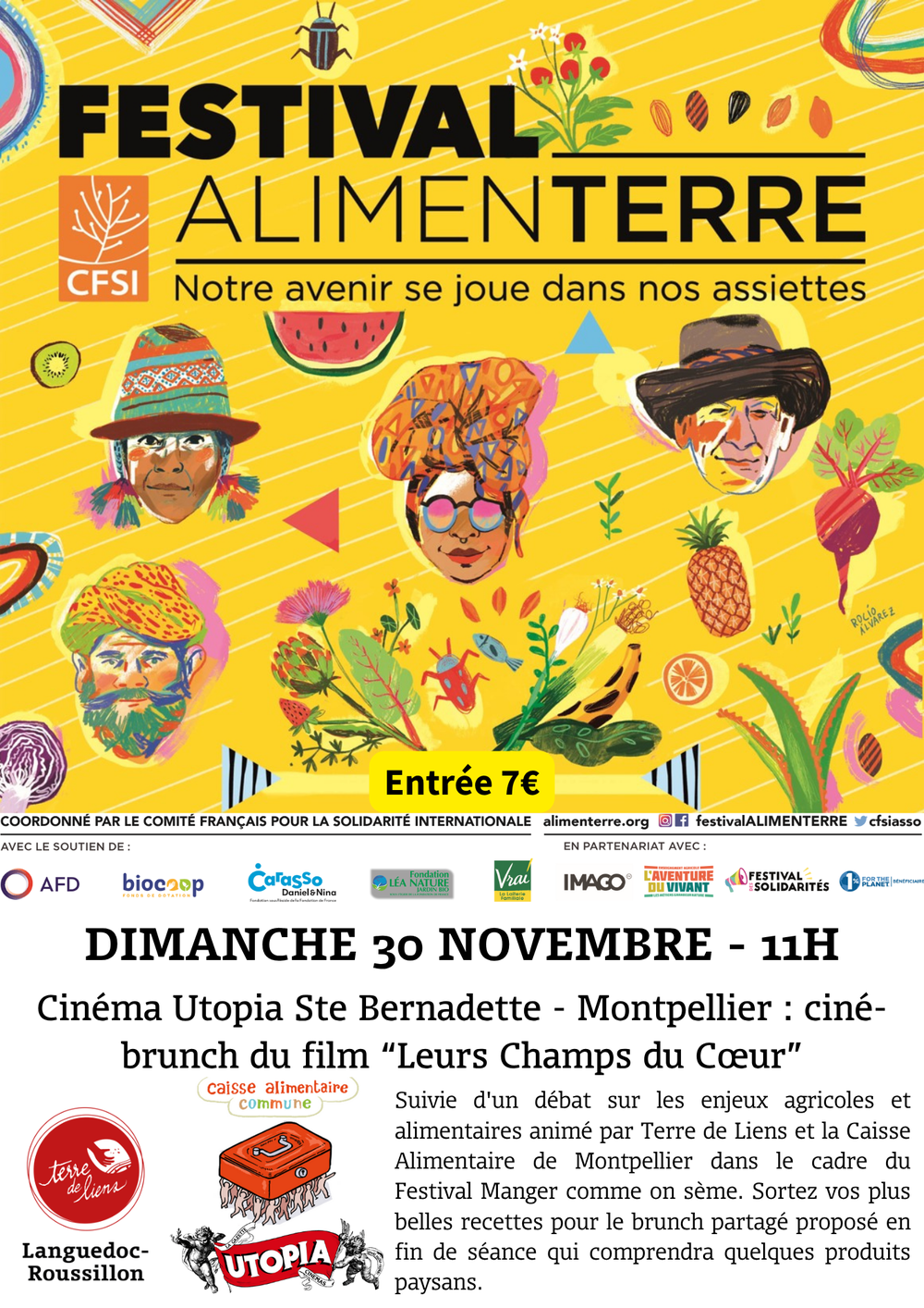 Terre de Liens et la Caisse Alimentaire de Montpellier co-animent cette séance autour du film "Leurs Champs du Cœur", sélectionné par le festival Alimenterre. La projection sera l'occasion d'aborder les enjeux agricoles et alimentaires actuels, que connaissent bien les deux structures. Des paysan·nes seront aussi présent·es pour le débat. Nous invitons les participant·es à sortir leurs plus belles recettes d'automne pour le brunch partagé qui suivra et qui comportera quelques produits paysans !