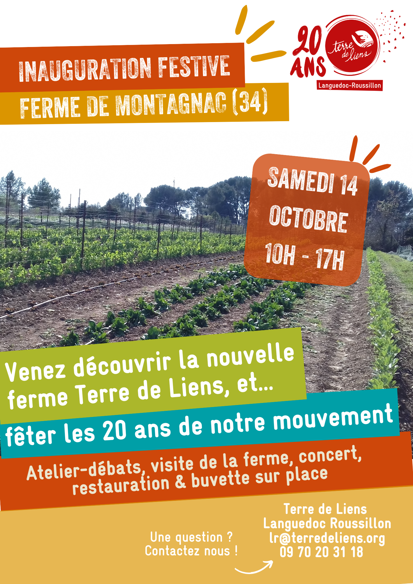 Depuis 20 ans, le mouvement Terre de Liens œuvre pour la préservation des terres agricoles, et accompagne l'installation de paysans en impliquant citoyens et pouvoirs publics. En Languedoc-Roussillon, le soutien de nos adhérents et partenaires permet des actions concrètes: en 2023, deux nouvelles fermes ont été acquises grâce au travail de nos bénévoles et salariés. Et c’est pour célébrer l’inauguration de l’une d’entre elles que nous avons l'honneur de vous inviter…