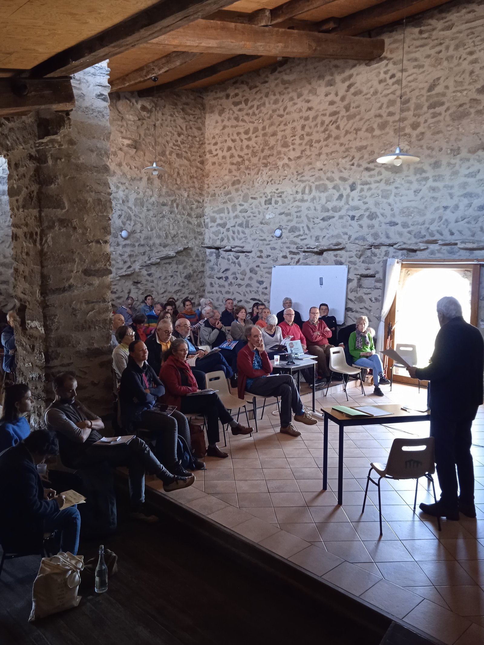 André ROBINET ouvre la séance et présente le rapport moral: poursuite de la départementalisation de l’association, acquisitions récentes dans l’Hérault et les Pyrénées Orientales… Même si la pression sur les terres agricoles est grandissante, notamment sous l’effet de la loi Zéro Artificialisation Nette (ZAN), notre action prouve que le portage d’intérêt général que nous proposons est une solution pour installer une nouvelle génération de paysannes et paysans. André quitte donc la présidence avec sérénité !
