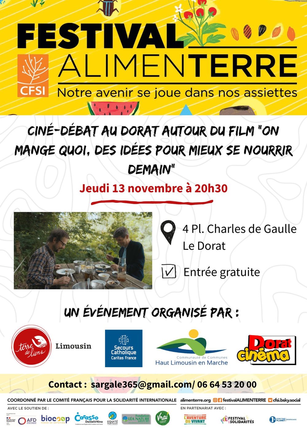 La Communauté de Communes du Haut Limousin en Marche, le Secours Catholique et Terre de Liens Limousin vous invitent à une projection du film "On mange quoi, des idées pour mieux se nourrir".