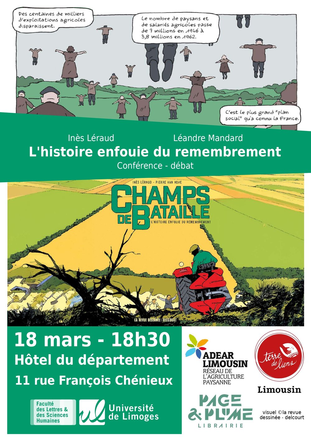 Pour comprendre les fondements du remembrement, nous vous invitons à une conférence avec Inès Léraud et Léandre Mandard qui nous expliqueront les origines de ces politiques agraires, leur mise en place dans les campagnes et leurs conséquences.