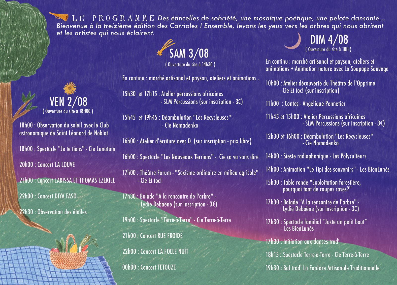 Retrouvez toute la programmation sur https://www.lescarrioles.fr/ !