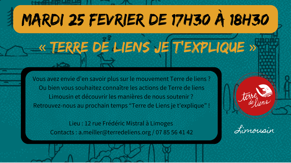 Ce sera aussi l’occasion de découvrir l’actualité de Terre de Liens Limousin, nos actions et les enjeux de notre action près de chez vous !