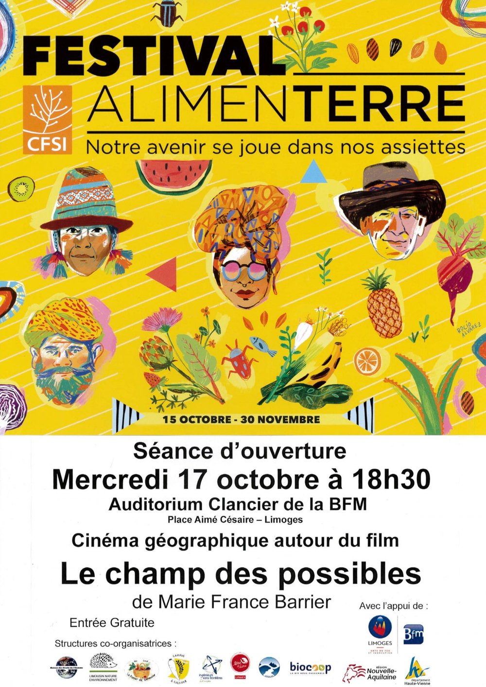 Mercredi 17 octobre à 18h30 à l’auditorium Clancier de la BFM de Limoges (87), Terre de Liens Limousin co-organise la séance d’ouverture du festival AlimenTerre en Limousin.