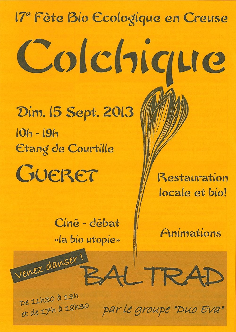 Cette foire bio-éco rassemble, le 3e dimanche de septembre, plus de 80 producteurs bios et associations présentant les produits du terroir : légumes, fruits, plants, viande, fromages et produits laitiers, charcuterie, confitures, coulis, miel, pains, cidre et jus de fruits, vins, cosmétiques bio, huiles essentielles bio, produits d’entretien écologiques, associations,artisanat.
