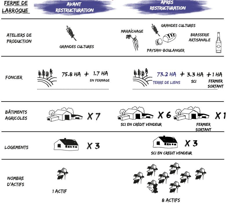 Et pour nombre des fermes Terre de Liens, transmission a rimé avec restructuration !
