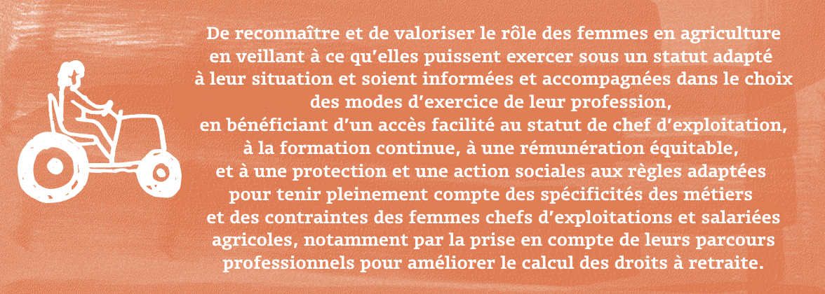 Cette nouvelle Loi d'orientation agricole, fraîchement votée, inclut plusieurs dispositions au sujet de la place des femmes en agriculture. On espère que cela contribuera à accélérer l'évolution des mentalités et à matérialiser des avancées concrètes dans l'accès aux métiers et aux terres agricoles.