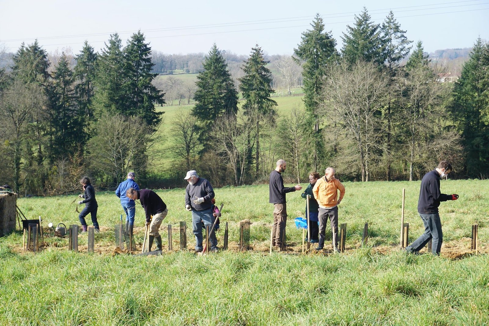 Les paysans et paysannes de Terre de Liens, accompagné·es de nos équipes expertes en agroécologie et de nos bénévoles, implantent des haies, des bandes fleuries, créent des mares et installent des nichoirs pour recréer des milieux naturels au sein des parcelles cultivées.