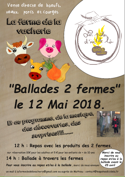 Pour vous inscrire à la balade, envoyer un courriel à : lafermedelavacherie[a]gmail.com