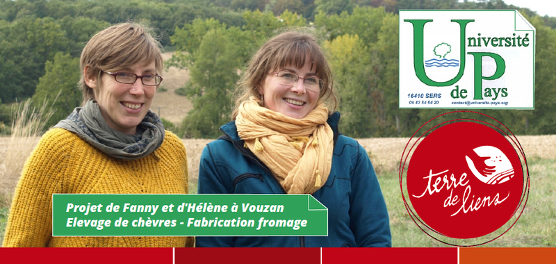 Fanny Goudet et Hélène Richard souhaitent s’installer en tant qu’éleveuses de chèvres en agriculture biologique. Elles prévoient de transformer le lait en fromage et de vendre en direct leur production. La ferme du Jard située sur la commune de Vouzan est adaptée à leur besoin : 26 hectares de terre, des bâtiments d’élevage et 2 maisons d’habitation.