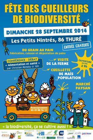 Fête des cuilleursNous vous invitons à participer à la Fête des cueilleurs de biodiversité le dimanche 28 septembre 2014, à Thuré (86) sur le thème 'du grain au pain', et dans le cadre de la semaine des semences paysannes.