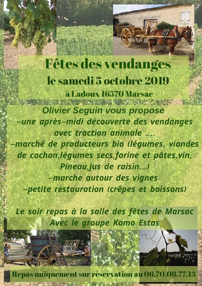 Retrouvez les bénévoles Terre de Liens à la fête des vendanges sur la ferme du Ladoux à Marsac.