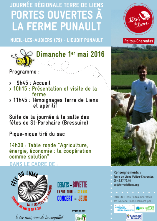 La journée commencera avec une visite de la ferme puis nous nous retrouverons à Bressuire autour d’une table ronde sur le thème : "Agriculture, énergie, économie : la coopération comme solution".