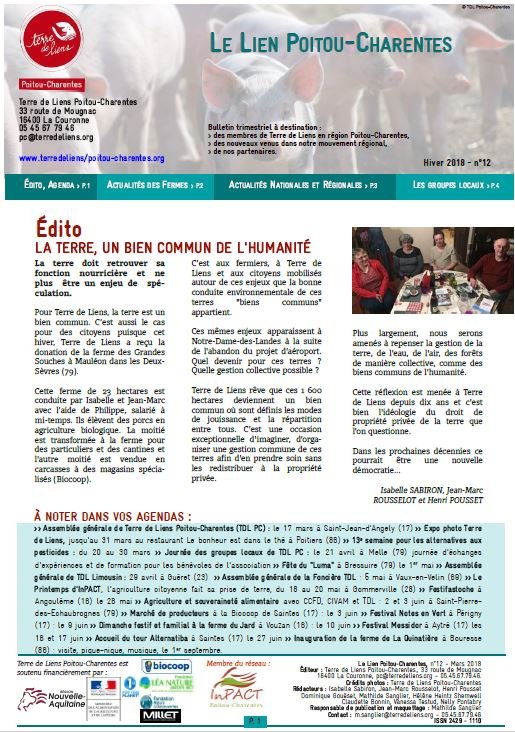 Les dernières nouvelles de Terre de Liens en Poitou-Charentes sont arrivées !