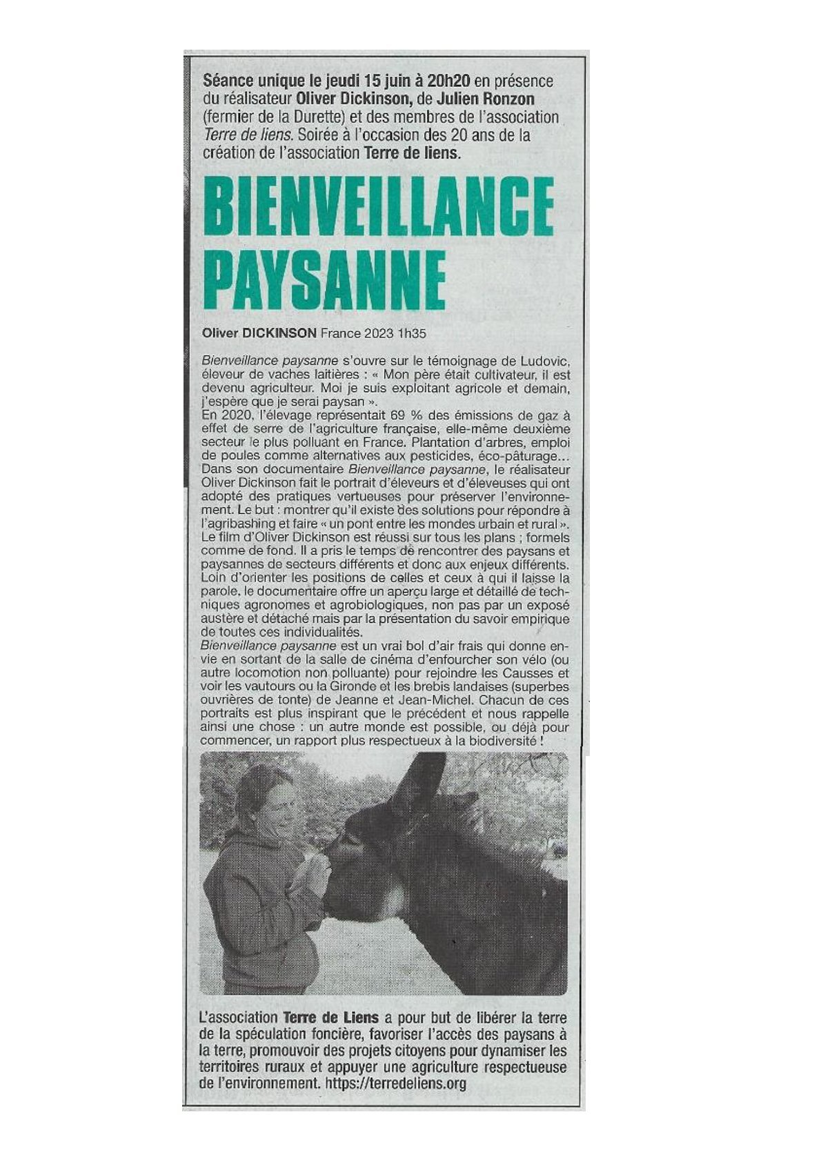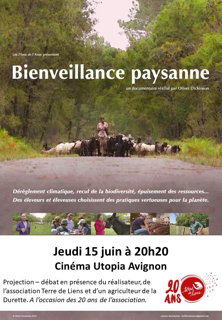Projection du beau film Bienveillance Paysanne au cinéma Utopia puis débat en présence du réalisateur, de Julien agriculteur de la ferme de la Durette et de l'association Terre de Liens PACA. Venez nombreux !