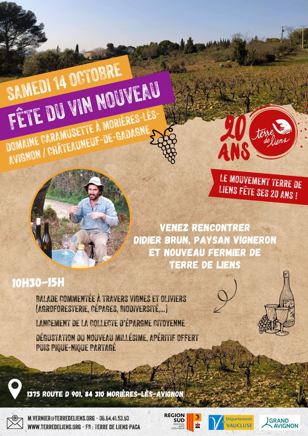 Au programme : balade commentée dans les vignes et oliviers du paysan-vigneron Didier Brun à plusieurs voix, dégustation des premiers jus du millésime 2023 et pique-nique convivial le midi. Ce sera l'occasion de lancer la collecte d'épargne citoyenne pour cette ferme !