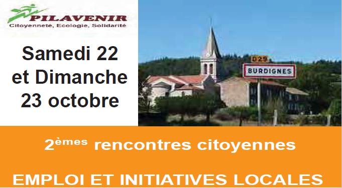 Le collectif PILAVENIR "cityonneté, écologie, solidarité" organise pour la deuxième année à Burdignes des rencontres citoyennes les samedi 22 et dimanche 23 octobre 2016.