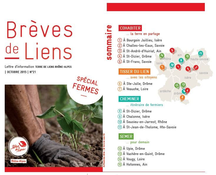 La lettre d’info trimestrielle Rhône-Alpes, Brèves de Liens, vient de sortir. Pour l’édition automnale, c’est un numéro 'spécial fermes Terre de Liens', bonne lecture !