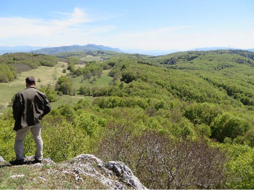 Il a passé une semaine sur le site des Plans d’Hotonnes avec Pierre et Priscilla et leur troupeau de brebis laitières. Pour permettre leur installation, Terre de Liens a acquis le bâtiment de la bergerie et deux îlots de terres agricoles. Une zone de prairies de fauche (39 ha) à proximité de la bergerie à 1100 m d’altitude et une zone de pâturages et forêts (46 ha) à 1200 m. Pour l’îlot du haut, le pâturage (qui reste la priorité) a laissé la place sur une surface de quelques dizaines d’hectares à une hêtraie. Il semble que depuis les années 50, le troupeau était en densité faible et en déplacements libres dans de grands parcs. Les animaux ont privilégié les meilleures zones en laissant le boisement s’installer.