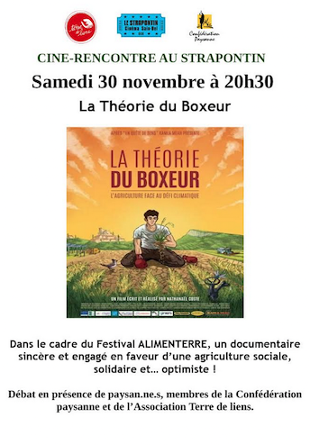 - Projection de La Théorie du Boxeur, un documentaire sincère et engagé en faveur d’une agriculture sociale, solidaire et... optimiste ! (cf synopsis)